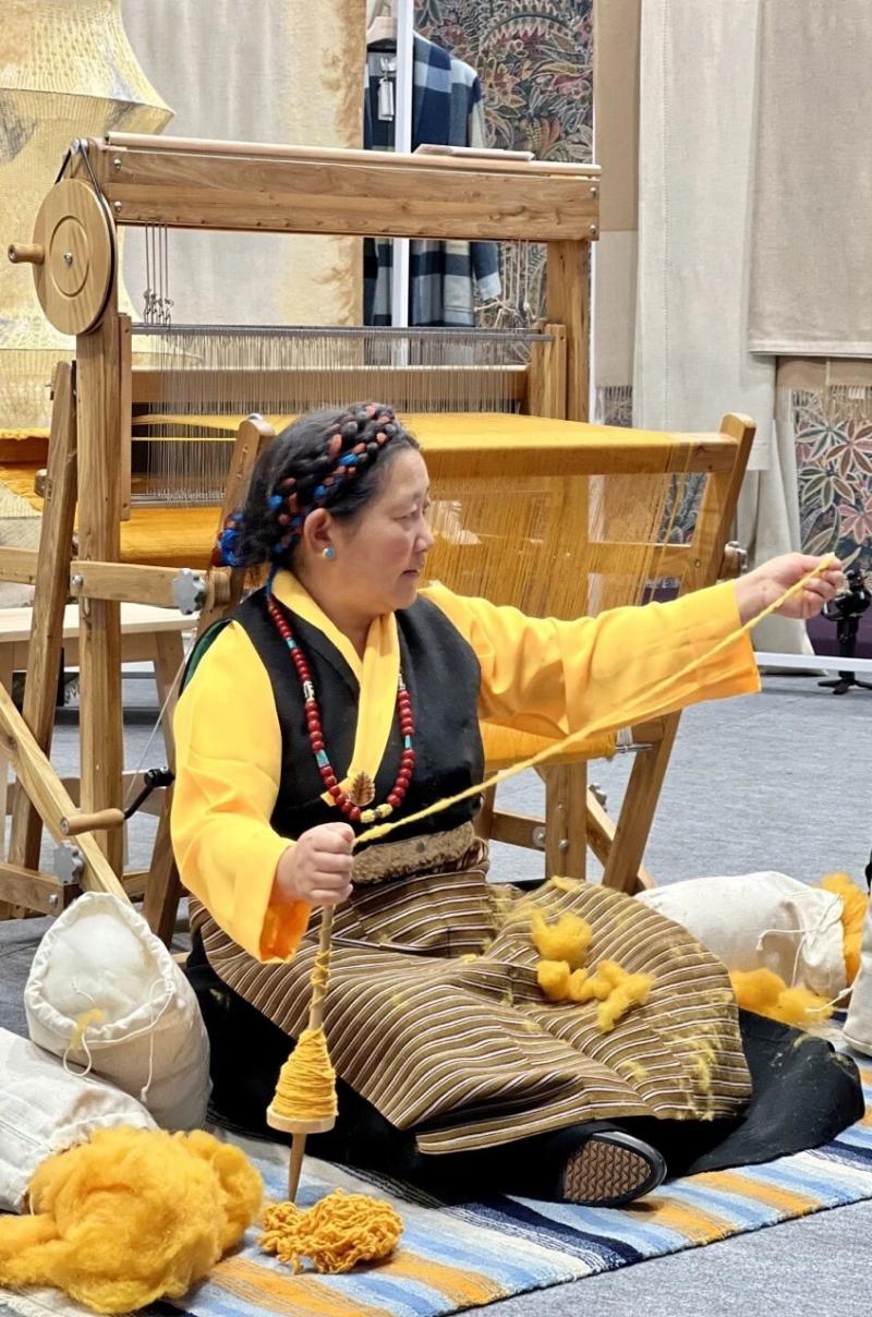从前在家务农、放牧的“阿佳”(藏族对女性的尊称),如今走进工坊成为技术骨干,甚至走向国际舞台——2024年巴黎时尚家居设计展(Maison&Objet)上,格桑卓玛现场向全球观众展示氆氇工艺;残疾姑娘次仁片多,通过钩织羊绒玩偶等产品重塑人生。