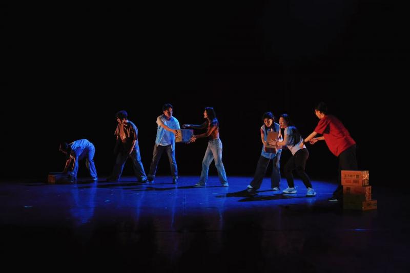 演出现场,五个小组的原创作品依次亮相,每个作品都展现出独特的艺术追求与风格:《共享厨房》以温暖治愈的叙事,探讨了现代都市中的生存、记忆与守护;《娘惹艾美丽》依托“娘惹”文化,引导观众思索至亲之“爱”;《滴哥老赵》聚焦滴哥一族,在荒诞的碰撞中看清“逃离”的最终归宿;《一树梨花》融入戏曲元素,在戏谑中感受“以智慧反抗压迫,用巧计颠覆强权”;《落坡岭》以真实人物事件为蓝本,展现社区工作者在不可抗力面前的坚守与敬业。