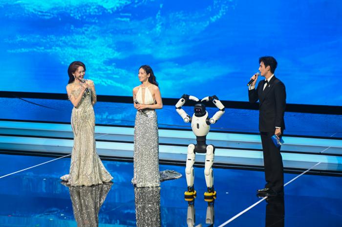 本届金鸡奖终评会将在电影节期间举行,各大奖项将于11月15日晚在颁奖典礼上揭晓。11月11日晚,主持人在2025年中国金鸡百花电影节开幕式现场与机器人互动。