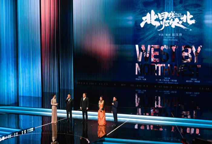 11月11日晚,新片新作《北回归线以北》主创人员在2025年中国金鸡百花电影节开幕式上进行推介。
