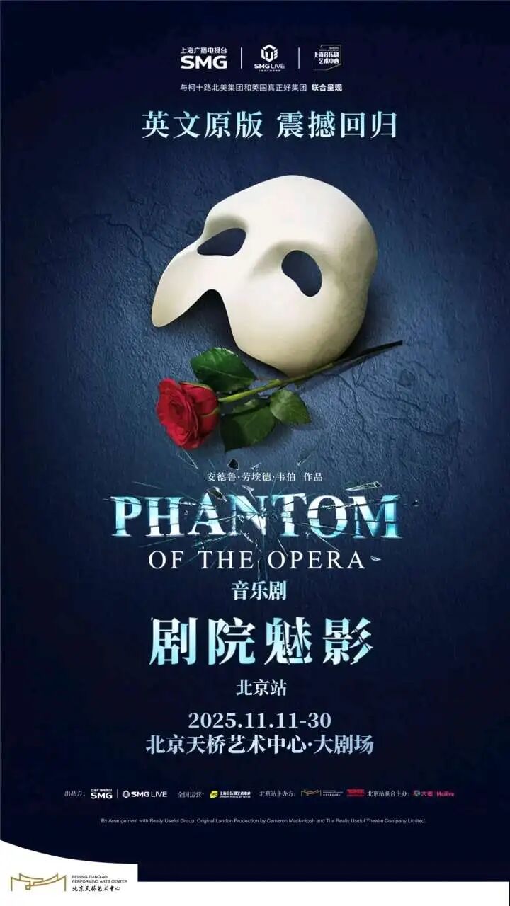 据介绍,本次戏剧市集将打破传统剧场空间限制,在天桥艺术中心全域打造沉浸式演出环境。届时不同门类的演出将轮番上演,小柯剧场经典音乐剧《西大钟下》再现舞台,诗词主题演出《清平调》《如梦令》等精选片段也将同期亮相。更值得关注的是,十年三度来京演出的英文原版音乐剧《剧院魅影》将再度亮相。本次演出将以全新阵容呈现,通过升级的舞台设计与制作,展现这一经典剧目的持久魅力。