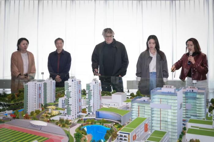 评委一行参观电影学院怀柔校区建设规划沙盘,详细了解校区布局、教学功能与“双校区”发展成果。