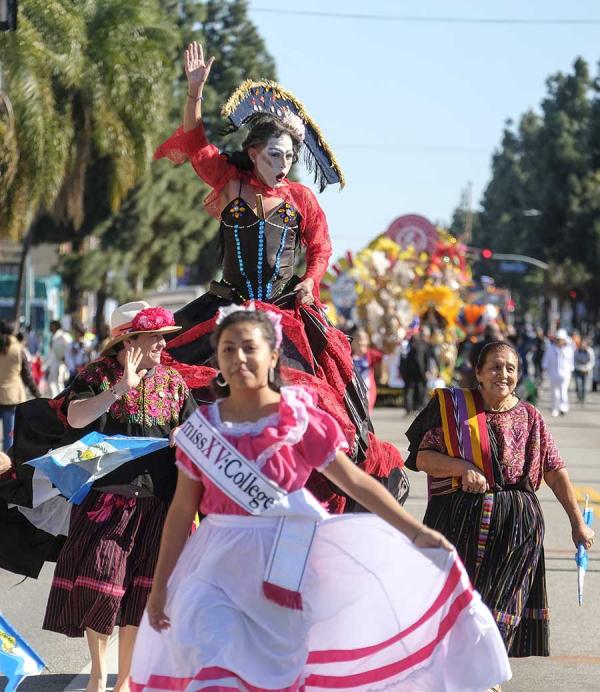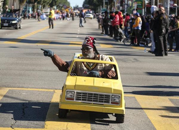 在美国洛杉矶,演员参加马丁·路德·金纪念日游行活动。