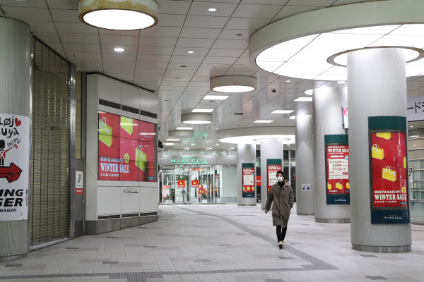 1月9日,日本东京实行紧急状态后的首个周末,一名男子在日本东京涩谷出行 新华社记者 杜潇逸 摄