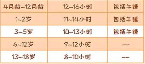 不同月龄的宝宝每天睡眠时长不同,可参考下表。