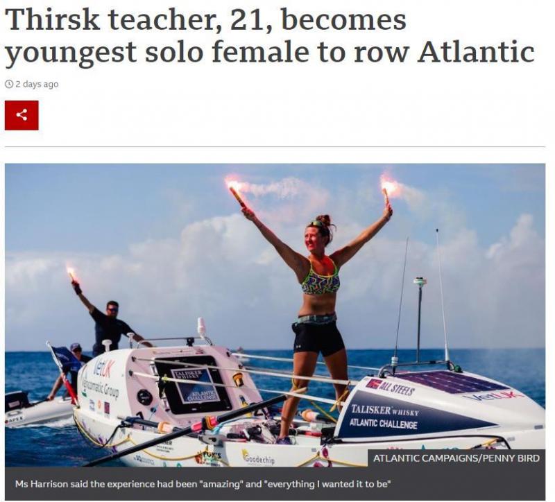 据英国媒体报道,年仅21岁的哈里森于2020年12月从西班牙的加那利群岛出发,最终到达加勒比海的安提瓜岛,用时70天3小时48分。