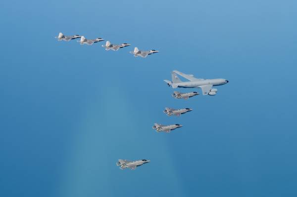 据空自介绍,新田原基地(宫崎县)4架F-15战机、筑城基地(福冈县)4架F-2战机参加了训练。美军出动了海军陆战队的2架F-35B隐形战机,以及空军的4架F-15战机、1架E-3空中预警机、2架KC-135空中加油机。
