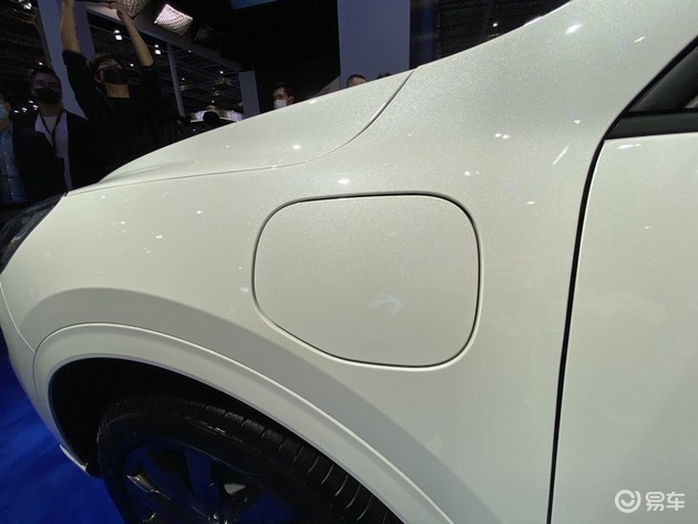 侧面依旧采用了官方称之为“水滴型”的设计理念,配合低倾的A柱和后短悬的造型,车身呈现出蓄势待发之势。另外新车配备隐私玻璃,为后排乘客提供了一定的私密空间。此外,车身四周进行了简化处理,取消了燃油版上的下裙版、前后保险杠区域的黑色装饰。