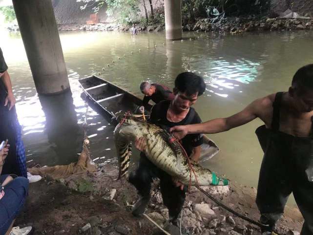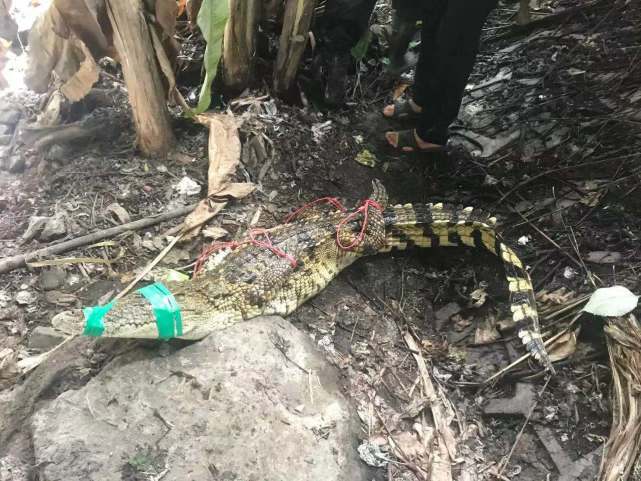 当天下午2时许,经过近1小时的密切配合,处置人员利用捕鱼网等捕捞工具顺利将鳄鱼捕捉,随后由镇农办部门处理。