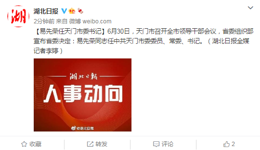 天门市委书记易先荣任湖北省民政厅党组成员、副厅长