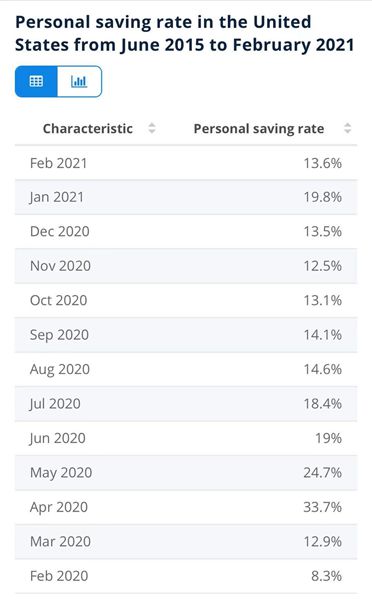 综合美国商务部经济分析局(BEA)等机构数据显示,美国居民储蓄余额在2020年4月达到顶峰,个人储蓄率达到创纪录的33.7%,随后在5月回落到24.7%,并在随后一年内震荡,在今年2月从1月的19.8%回落到13.6%。