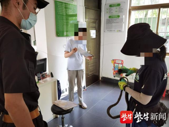 7月7日上午11时许,南京江北新区公安分局特巡警支队龙山南路警务站接到一个报警求助电话,报警人王女士称,家里跑进一条一米长的蛇,黑色的,需要民警到现场帮助。