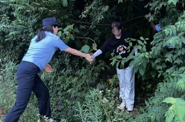民警经过一阵摸索,才在杂草丛中找到了一处下山点,用梯子将被困人员救下山。