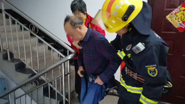 两位老人虽然都已来到楼梯间,但见老伴身上还穿着单薄,“出来没拿衣服,我回去拿一下好不?”老奶奶一边征询着老伴的意见一边时不时往屋内看,似乎有“溜回去”的想法。副站长黄君粮迅速返回屋内,从卧室里将老人衣物拿了出来,“这是衣服,赶紧穿上。”穿上衣服的二老这才安安心心地跟着消防员来到了楼下安全区。“幸好发现得早,消防员赶来的快,不然我们老两口还不知道会怎么样。”
