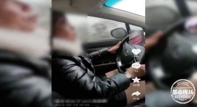 除了2月15日的视频是由坐在副驾驶座的人帮忙拍摄外,其余3条短视频均由女子自己边开车边拍摄,过程相当危险。