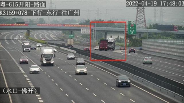 据介绍,4月19日17时47分,开阳高速当班监控员巡查发现,往海南方向水口站出口附近,一辆白色小轿车发现错过高速公路出口匝道时,突然从左侧第二车道违规压实线跨过两条车道,迫使后方大货车紧急减速避让,所幸未造成交通事故。逼停两辆货车后,小车从导流线区域直接驶出了水口站。针对此危险驾驶行为,开阳高速监控中心立即收集相关视频证据和信息资料,并通知了江门市公安局交警支队高速三大队进行处理。