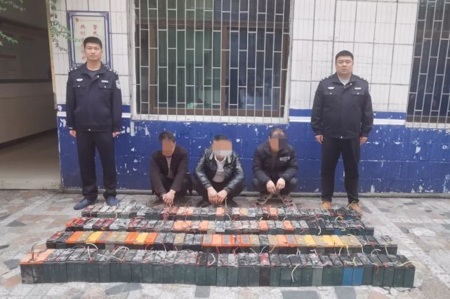 经舜峰派出所专案民警反复走访摸排和现场勘查,逐步摸清了该团伙的作案特点,锁定三名嫌疑人均居住在桂阳县城内。4月15日,民警通过数日的布控蹲守,成功将三名盗窃嫌疑人抓获,并在其住处查获被盗各类电瓶100余块。