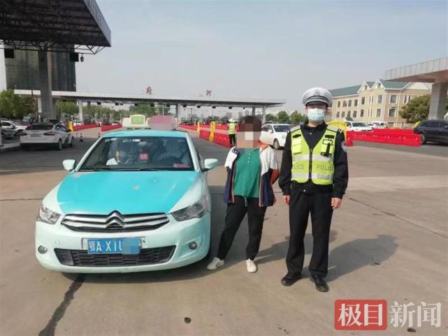 当日下午,岱黄高速府河收费站车来车往,黄陂区交警二中队汉口北执勤点民警在此处执勤维护秩序。下午3时许,一辆车牌号为鄂AXIU**的出租车刚驶出收费站,民警便看见车后排坐着好几个人,显得十分拥挤,于是依法将该车拦下检查。