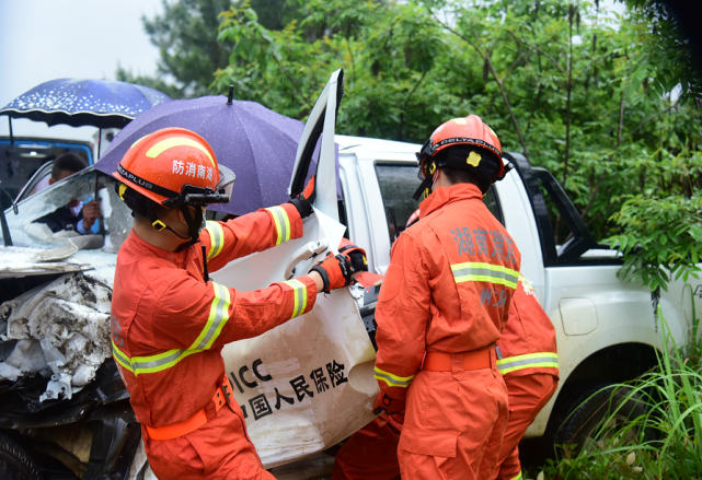 车祸现场,株洲消防救援人员“一站一跪”救出被困人员