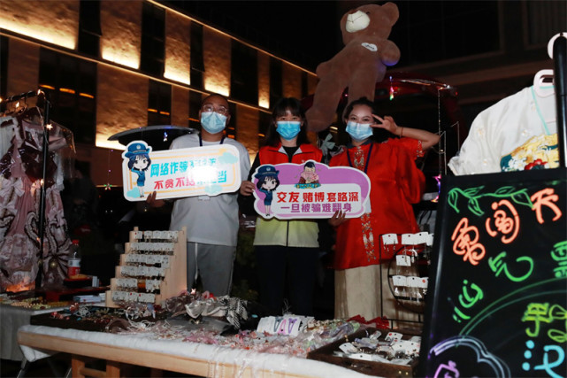 人间烟火气,最抚凡人心。5月14日晚,在南京江北新区大厂工业文明小镇1934文化产业园,近50辆汽车依次排开,车主们打开后备厢,亮起夜灯,售卖各种小食、文创、潮玩……以消费场所的新体验拓展市民美好生活新空间。在这一群车中,一辆警车格外引人注意。原来,南京江北新区警方结合“大走访”警民恳谈活动,将警车开进后备厢集市,以警车后备厢为载体,以反电诈知识为“商品”,吸引市民来“消费”。