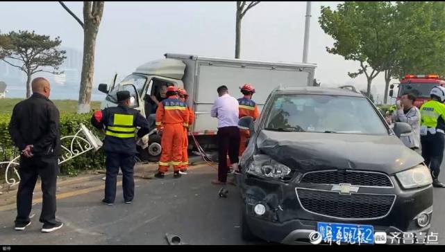 20日,在西海岸新区融创茂附近发生一起交通事故,一人被困。西海岸新区消防救援大队消防人员仅用时17分钟成功将被困司机救出。