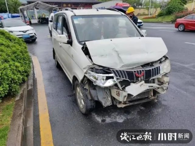 11时44分,路面巡逻辅警金力赶到了事故后方,在做好预警后迅速赶到事故车辆处查看情况:所幸驾驶员系了安全带,身体并未受到伤害,但车辆头部因撞击严重受损。