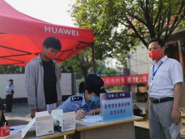情况紧急,民警一边安排户籍员迅速为考生补办临时身份证和户籍证明,一边联系考场外的驻点民警和相关工作人员,沟通先让考生进入考场,随后立即补送证明。大约10分钟后,证件补办完结。民警驾驶警车,一路护送身份证抵达,交由考点民警送进考场,黄同学得以顺利参加考试。
