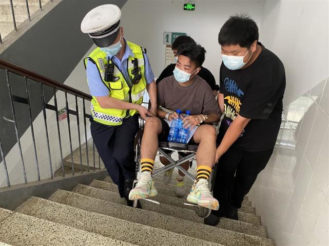 由于家长不能进入考场,而考生进入考场后还得爬楼梯,正在考点执勤的襄阳市公安局东津新区分局民(辅)警了解情况后,立即组织警力将其抬进考场。“谢谢各位警察叔叔,我一定好好考!”在考场坐好后,该考生开心地连连道谢。