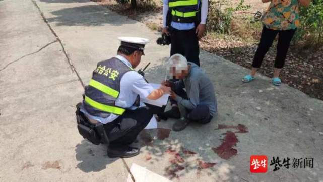 经民警现场询问得知,老人年近90岁高龄,上午骑车上街买东西,不料回来骑到拐弯处因操作失误导致电动车发生侧滑,不慎摔倒在地。民警先是上前查看了老人的伤势,发现老人眼角上有一道很深的口子在流血,脚也在流血。沟通中发现老人意识清醒,询问其家里有没有人,老人声称自己是五保户,监护人是其侄子。