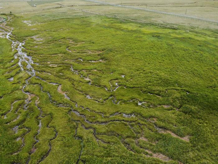 7月28日拍摄的新疆温泉新疆北鲵国家级自然保护区(无人机照片)。新疆温泉新疆北鲵国家级自然保护区位于新疆博尔塔拉蒙古自治州温泉县,栖息着生存和进化了3.5亿年的新疆北鲵。