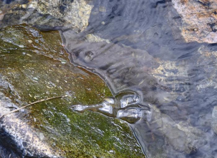 7月28日在新疆温泉新疆北鲵国家级自然保护区内拍摄的新疆北鲵的卵胶囊。