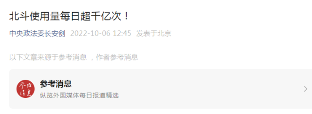 政知道(微信ID:upolitics)注意到,中央政法委微信公号长安剑6日转载《参考消息》报道,披露了我国北斗卫星导航系统最新落地进展。