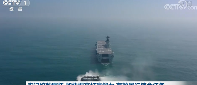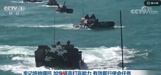 政知君注意到,画面还披露显示多支一线作战部队练兵备战镜头、火箭军配属多型导弹发射镜头。此外,《新闻联播》还配发了075型两栖攻击舰(海南舰)、055型万吨驱逐舰(南昌舰)、歼-20隐身战机训练镜头,以及两栖装甲车渡海镜头。
