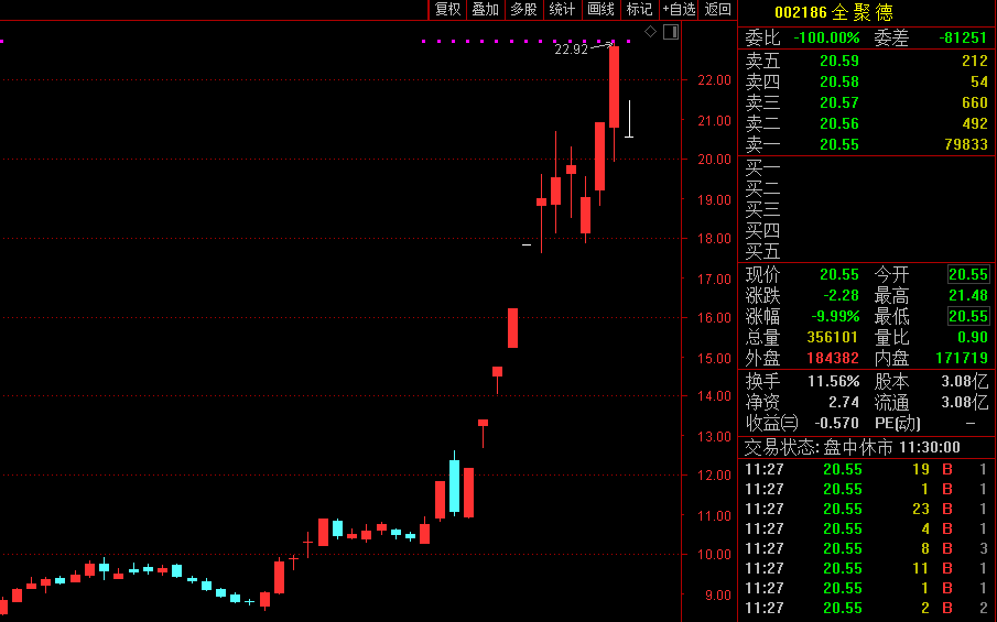 值得注意的是,10日复牌的牛股全聚德跌停,截至发稿,该股报20.55元,跌停板上封单超8万手。停牌前的14个交易日(2022年12月13日—12月30日),该股大涨约120%。