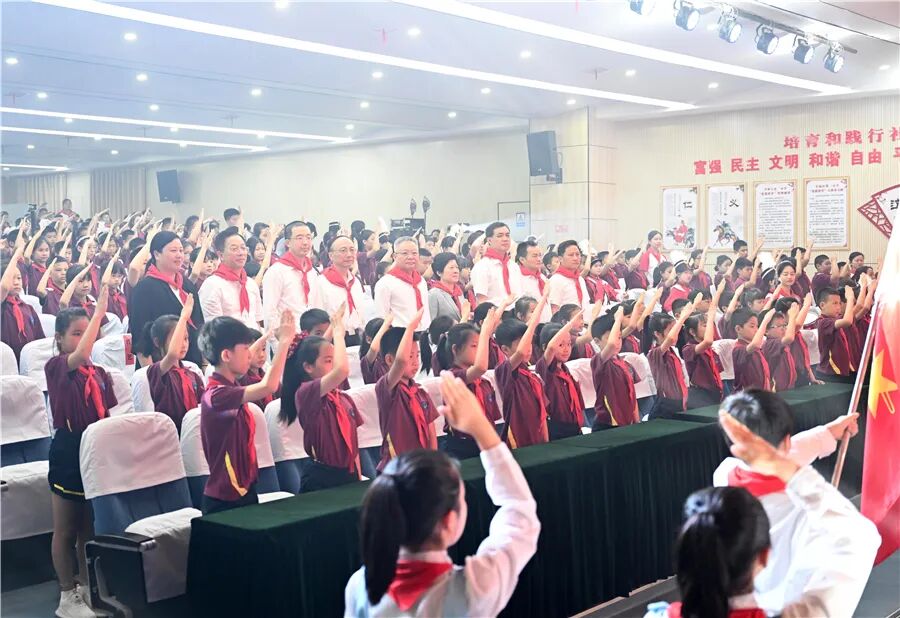 5月31日,沈晓明在长沙市开福区第一小学参加“听党话,跟党走,我与祖国共成长”庆“六一”主题队会
