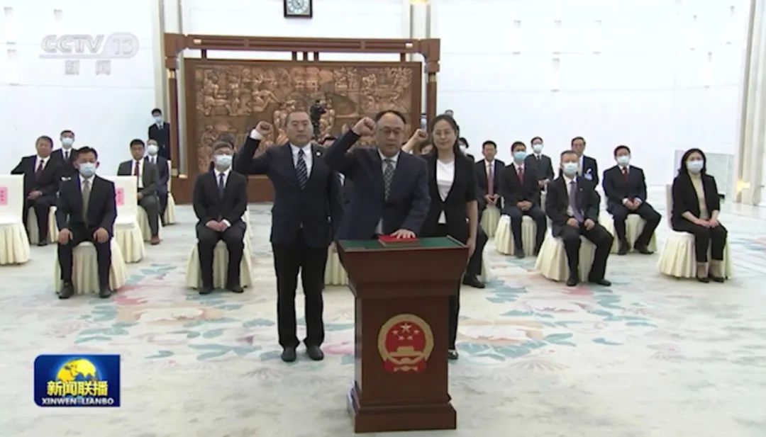 当日下午,十四届全国人大常委会在北京人民大会堂举行宪法宣誓仪式。