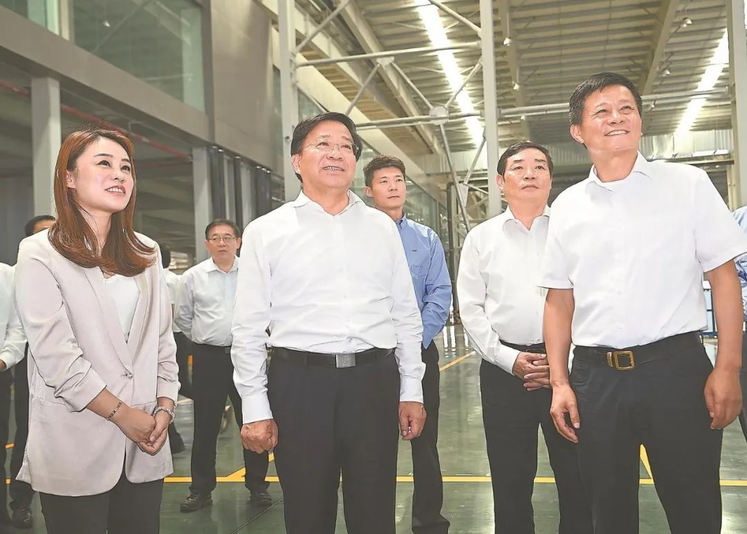8月31日,安徽省委书记韩俊在滁州市凤阳县安徽福莱特光伏玻璃有限公司听取企业生产经营状况介绍 杨竹/摄