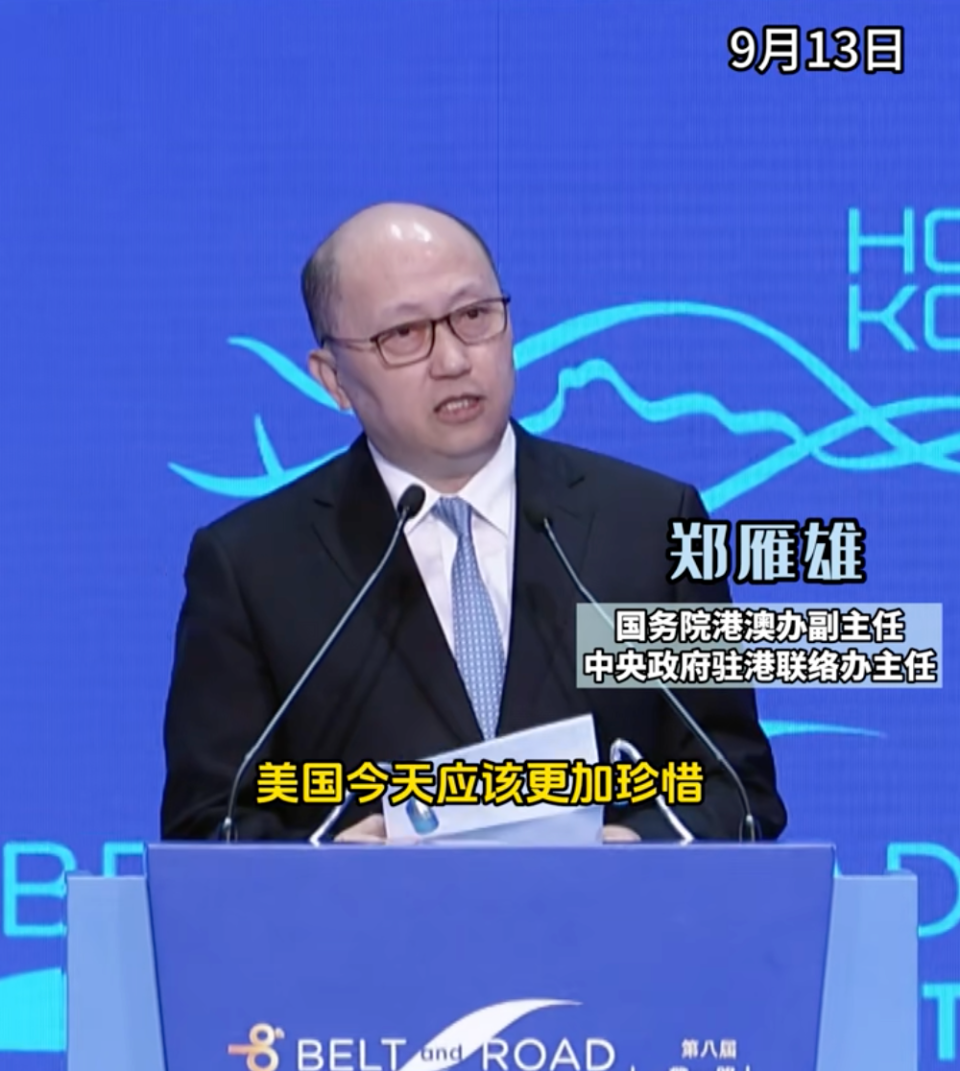 中央政府驻港联络办主任郑雁雄在论坛致辞表示,10年来中国推动“一带一路”,为各国带来巨大经济利益,产业链和供应链因中国而更有保障、物美价廉的消费品由中国提供。