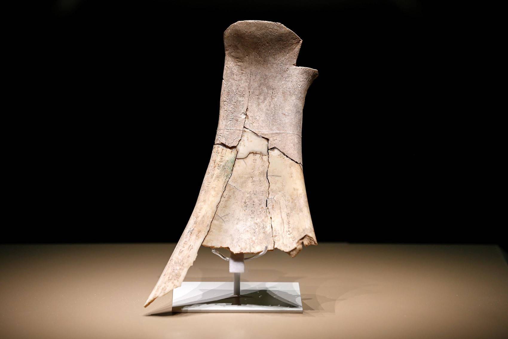 殷墟最初闻名于世,源自陆续出土的约15万片甲骨,这些神秘的文字,吸引着我们不断去探索、解读,到殷墟博物馆新馆自然也不能错过甲骨。其中,屯南甲骨,这片牛肩胛骨上发现单字93个,字字清晰、大小均匀、契刻有力,文字记录了商王多次关于田猎是否有灾祸的占卜,由于形状酷似甲骨文中的“骨”字,国家邮政局曾用它的形象向全球发行纪念邮品,堪称是“甲骨明星”。