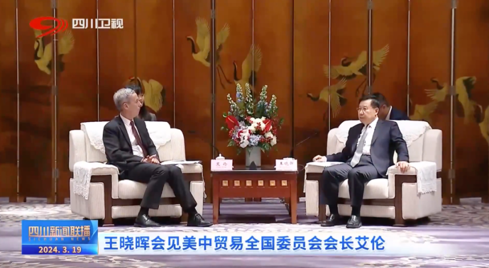 王晓晖在与艾伦一行会面时说,希望美中贸易全国委员会及会员企业继续发挥桥梁纽带作用,带动更多美国企业来川投资兴业,以此促进四川与美国各领域的交流交往持续走深走实。