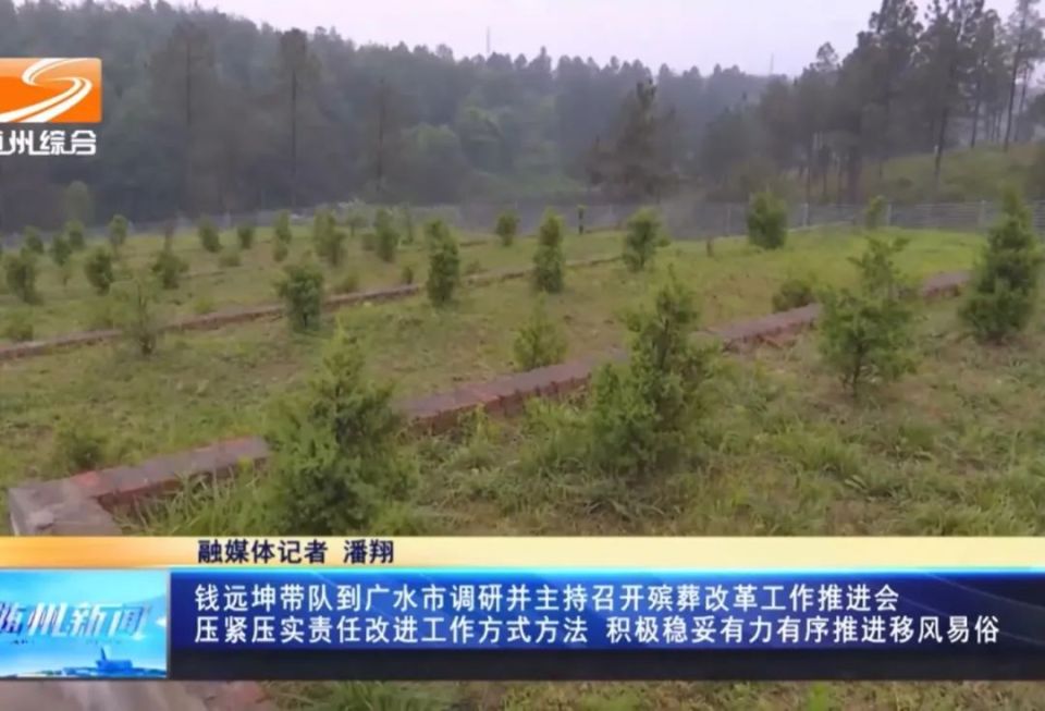画面显示,钱远坤一行前往马坪镇三里岗村公益性公墓,实地察看建设、使用、管理情况,听取了解广水市殡葬改革工作推进进展、存在的问题及意见建议。