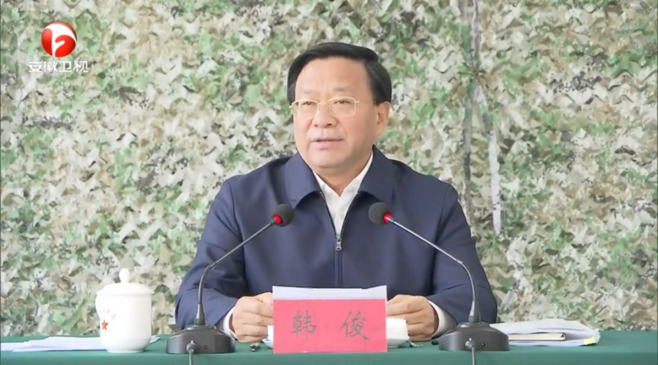 安徽省委书记韩俊是以“省军区党委第一书记”的身份出席上述会议的。
