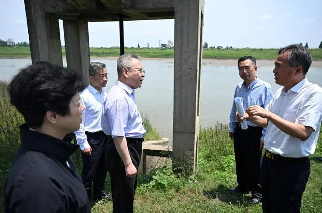 沈晓明来到岳阳市云溪区永济垸长江干堤实地察看白蚁隐患点,听取水利专家对防治白蚁的意见建议。