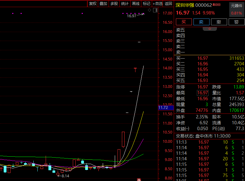 华为海思概念股深圳华强7连板,优博讯20cm涨停。
