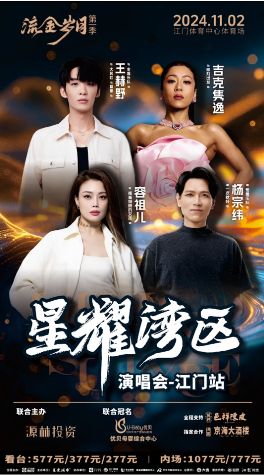 11月2日,歌手容祖儿、王赫野、杨宗纬、吉克隽逸演出的星耀湾区演唱会江门站举行,这是一场比较典型的拼盘演唱会,原定应该是四位宣传歌手都会登台表演,但演出当晚容祖儿并没有正常演出,根据现场观众在网上发布的视频,容祖儿声音沙哑的登台致歉,表示自己因为天气原因生病了,导致了失声,无法正常演唱:“今天病了失声,希望下次有机会加倍奉还,欢迎大家来到我的家乡江门。”但现场很多观众表示了不满,还有人高喊要求退票。