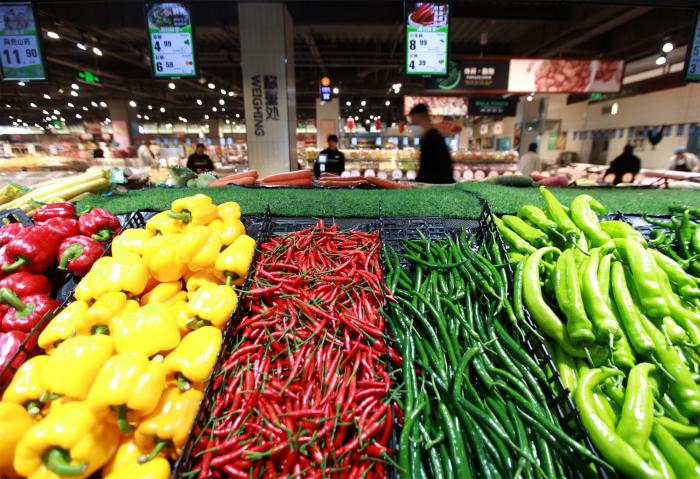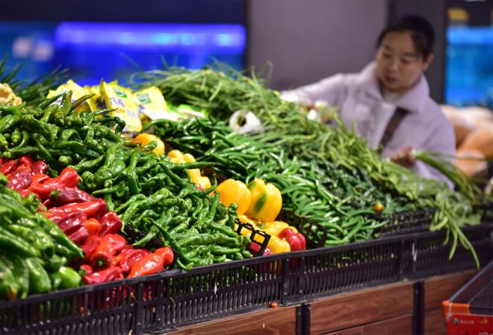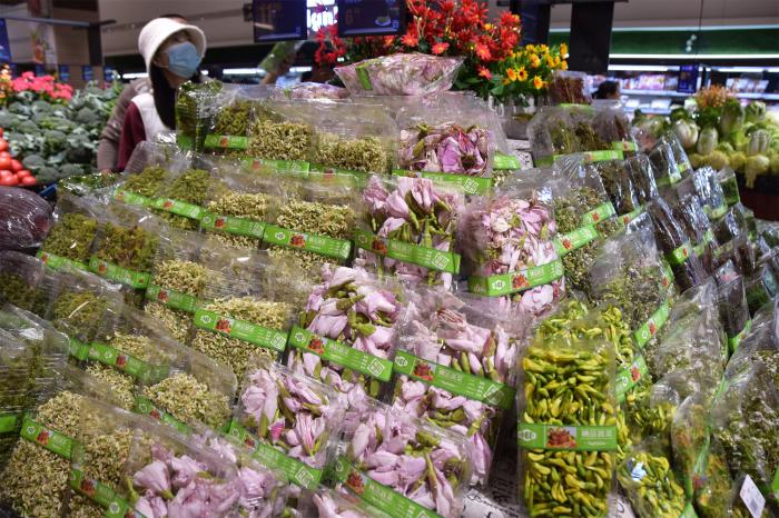 3月9日,消费者在安徽省阜阳市一家超市选购蔬菜。新华社发(卢启建 摄)
