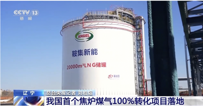 鞍集新能源科技有限公司项目经理 蔡欣博:一种尾气变成三种原料,转化出来的LNG是“最干净的化石能源”,液氨是基石型的化工原料,氢气是最有发展潜力的清洁能源,所以是实现了100%的转化。