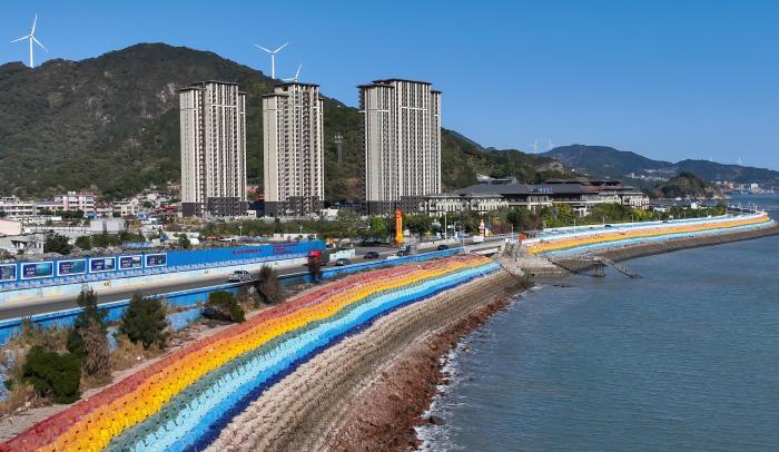 这是位于福建省连江县官坞村渔夫岛的彩虹堤坝(12月6日摄,无人机照片)。新华社记者 魏培全 摄