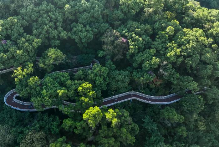 这是福州金鸡山公园的茉莉花生态廊道(12月7日摄,无人机照片)。新华社记者 魏培全 摄