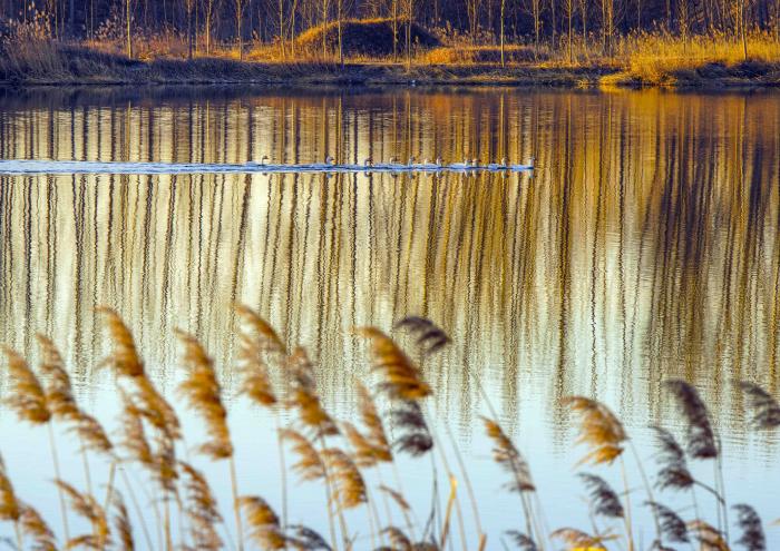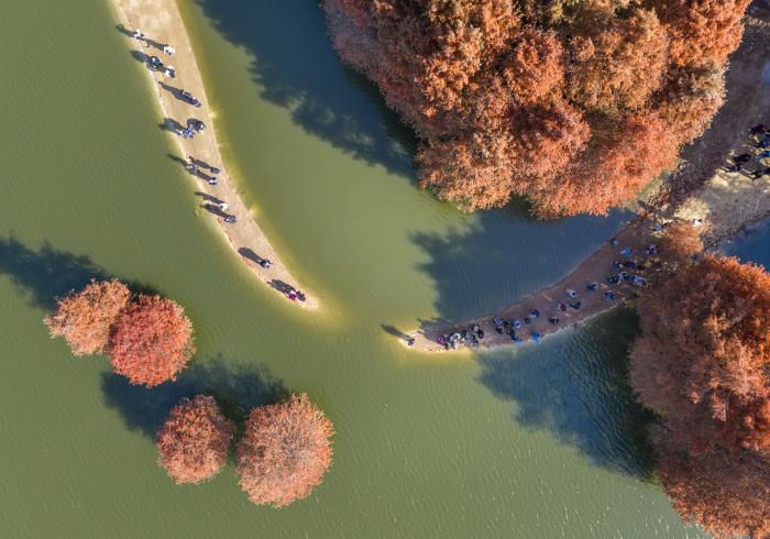 12月7日,市民在江苏省海安市上湖风景区游玩。新华社发(顾彬斌摄)